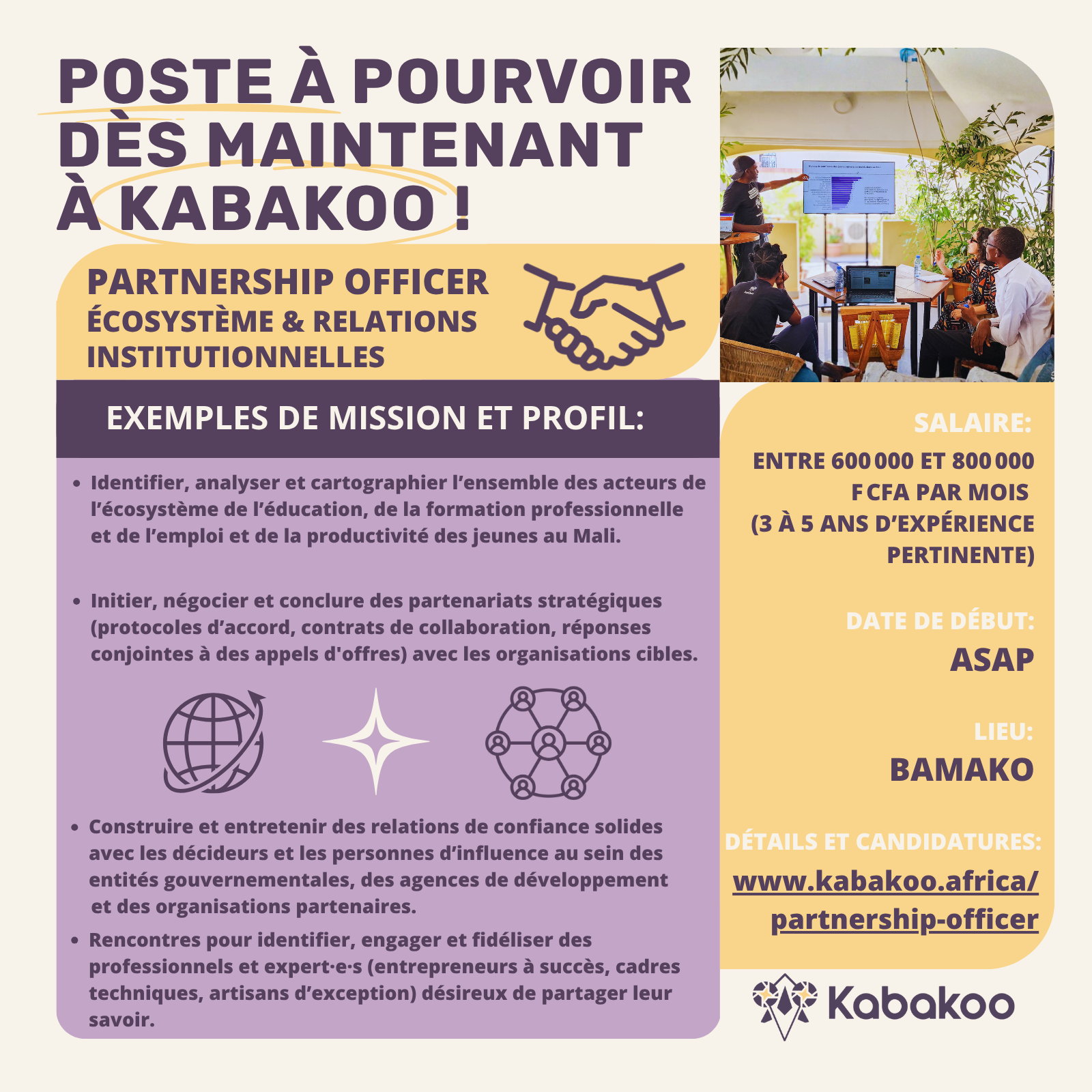 Kabakoo recrute un·e Partnership Officer – Écosystème & Relations Institutionnelles